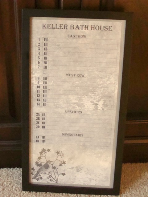 - A piece of ribbon was tied to the cap of a dry-erase marker and it was stapled with another length of ribbon to the back of the frame. Another piece of ribbon was added to the other side.