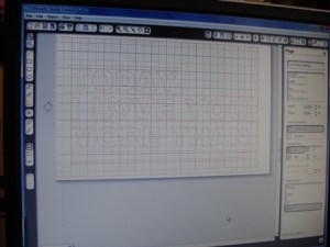 2. Because the vinyl had been rolled up for long time, I put it on the cutting mat to keep it flat while it was being cut.  I cut out the design.