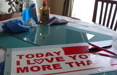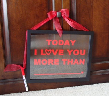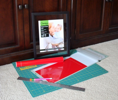 FinishedThe youth group at church is having a Valentine’s Day banquet as a fundraiser and they will be auctioning off items.  I made this dry-erase frame for them to auction off.  I’ll let you know if anyone bids on it (I hope they do!).  I’m sure I saw this idea on the internet somewhere.  I looked and looked for it again but I couldn’t find it.  I am sorry it doesn’t have an attribution – If I find it again, I’ll post it.